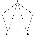 | 下の図のように,頂点Aと頂点C,Dを結び,五角形の内部を三角形に分割しました。 | ||