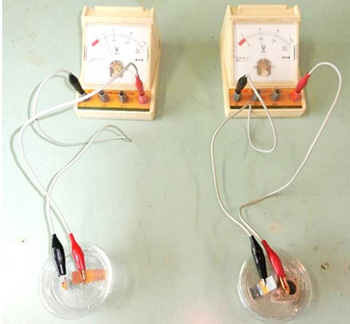 ダニエル電池(右)の比較実験