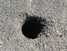図3 砂浜に見られるカニの巣穴