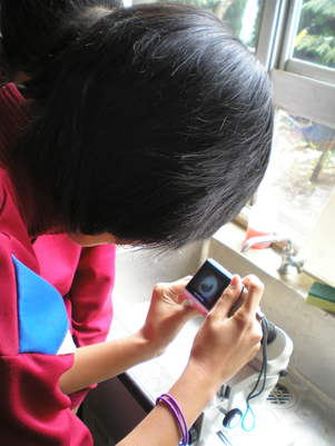 2.5mm方眼シートをシャーレの下に置き,スケッチをする際のガイドとする。レポート用紙にも方眼を入れておき,マス目に従ってスケッチを描いていけば,比較的簡単に拡大図を描くことができる。授業では5倍サイズ(1cm→5cm)の絵をA4レポートの上半分に描かせた。絵ができたらレポートを預かり,保管しておく。