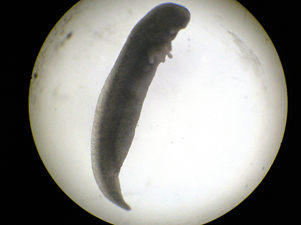 サンショウウオ幼生の外鰓(がいさい)は透き通っており,幼生を飼育水とともにシャーレに入れ,双眼実体顕微鏡で観察すれば,赤血球が移動する様子がよくわかる。