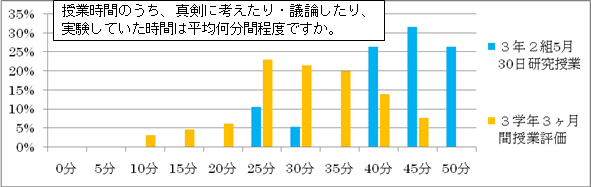 T「意見をうまく書けなかった生徒も,どうどうと質問しているのがよかったとも言っていました。似た感じの話がもう1つありました。どの生徒も集中していて理科が苦手な生徒はだれなのかわからなかったと話していました。」