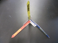 本時では,既製品のコイルの磁界観察用の実験装置にU字磁石を組み合わせたものに,ラミネート加工したシートを重ねたものを考案し,使用した。実験成功のポイントとしては,使用するU字磁石は消磁するなどして磁力がかなり弱い物を使用することが必要です。写真の装置では,抵抗を入れず2A程度の電流が流れるようにするとはっきりとした模様が出ていました。なお,実験の際には,生徒への火傷や感電などの指導を十分にして実験を行いました。