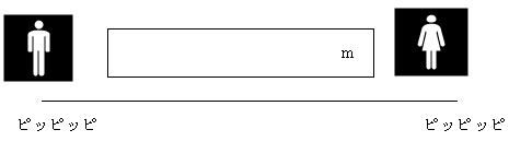 ①電子メトロノームのテンポを 240回/分にあわせる ②2台を同時にスタートさせる ③1台をメジャーの0mのところに置く ④別の1台を持って,遠ざかっていく ⑤2台の音がずれてくることを確認する ⑥音が一致したところの距離を測定する |
