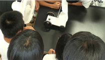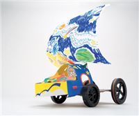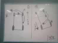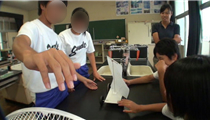 アーテック社の「風パワーぜんかい」という教材を使って,この車が風上に向かって走るようにするにはどうしたらよいかと,その理由を考えさせた。これは,校内の公開授業で行った。