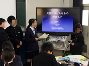 第一次は地震の起こる場所・規模・災害の3つの視点に分かれて新しいグループを形成し,地震に関する知識や考え方を学んだ。加えて学んだ内容をプレゼンテーションアプリ(Keynote)でスライドにまとめ,第二次に元のグループのメンバーに10分間でプレゼンテーションする活動を行った。これまでの表現活動からさらに発展させ,グループのメンバーで協力して一つのプレゼンテーションを作り上げて実施する形態を取り入れた。第二次には理科室内のディスプレイ2台とプロジェクターの計3箇所でそれぞれプレゼンテーションが行われ,聞き手からの質問や補足説明など双方向のやり取りも見られ,これまで以上に活発な表現活動が展開された。