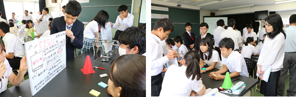 2時間の学習活動を通して,生徒たちは活発に話し合い活動に取り組むことができた。(図1)。