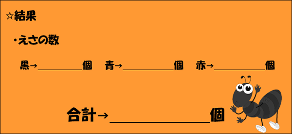 ③ 時間になったら,虫用カード2枚(白・オレンジ)に食べたえさの数を記録する。