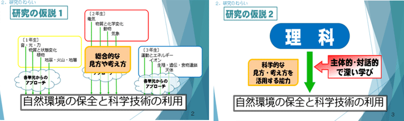 以上を踏まえ,下都賀地区では,理科の授業の中で環境についての総合的な見方や考え方を育み,それらを活用できるよう研究に取り組むこととした。そして,学習の手段として,「主体的・対話的で深い学び」は,有効な手立てであると捉え,研究の視点を以下のように設定した。