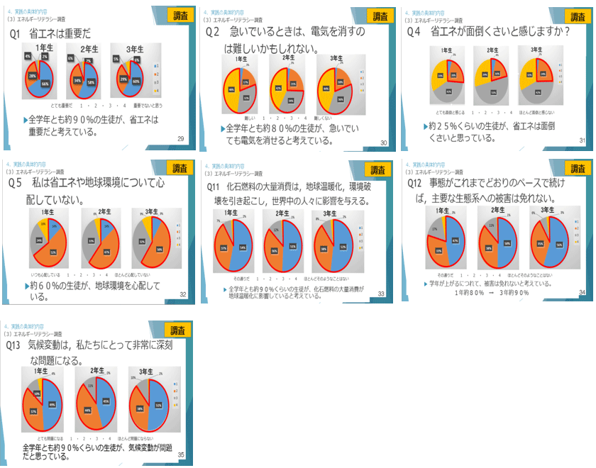 リテラシー調査では,環境に関する意識と実際の行動との乖離が見らたが,行動の変容が見られるように授業で扱うことがより一層必要になってくることを改めて感じた。