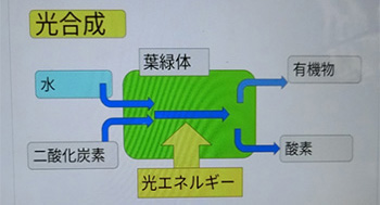 光合成のはたらきについては小学校でも学んでいるが,ここでは呼吸との比較を行い,気体と水の出入りについて共通することがあることに気づかせた。