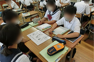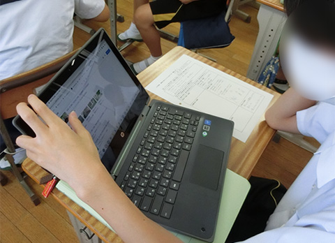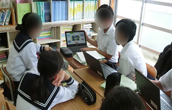 本校では週に1回,タイピングの時間を設けているが,そのスピードも個人差がある。スライドも図形の取り込みや配色,文字の挿入等,基本的技術を短時間で修得できる生徒とできない生徒がいるため,難しい生徒には個別に指導に当たり,修得の早い生徒についてはアニメーションを活用するよう指示した。