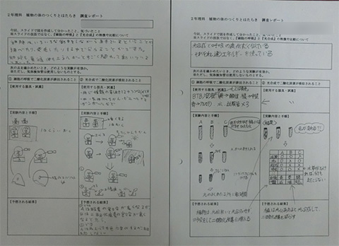 昨今,デジタル世代と呼ばれる現在の中学生は,これまで以上に効率的に正解を求める傾向が強く見られる。しかし,理科の本質は,自然事象にふれ,観察・実験を通して試行錯誤の中から規則性を見いだすことである。中学理科で,特に生物の単元のように自然界の中からサンプルを持参して行うような実験では,不確定要素が多く,予想とは異なる実験結果が導かれることも珍しくない。そうした際,どこに不備があったのか,次の実験では何を工夫すれば良いのか,等々をなかまと話し合い,自らの考えを再構成して,さらにその考えをなかまと共有し次の実験に挑む。こうした事の繰り返しを通して,思考力・判断力・表現力を養い,探究心に目覚め,深い学びにつなげることができると考える。また近年,一人一台の情報端末が配付された学校では,その活用も含めた単元構成が求められる。これを良い機会とし,プレゼンテーションソフトの活用を通して,個々の表現力の向上にも努めていきたい。