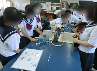 次に,「実際に自分たちがスライドで作ったモデル図のように気体がやりとりされているのか,確かめる実験をやってみよう」という投げかけを行った。ただし条件として,「呼吸と光合成のどちらか一方を選択し,片方だけを確かめる」とした。