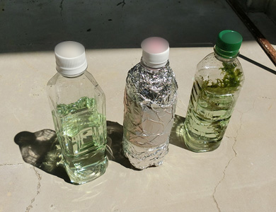 光合成グループは,実験の準備が整い次第,ベランダにそのセットを置くこととした。光合成については,天気が良ければ15分程度で結果が出せるが,呼吸のグループについては,実験セットを教室に置いて待つ必要があった。