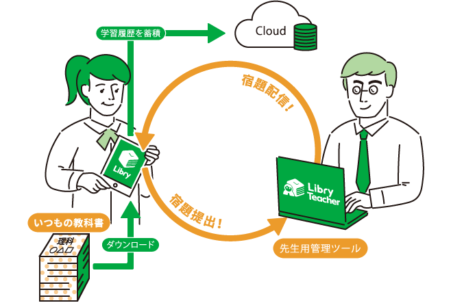 個別に最適化された学びにぴったりの学習用アプリです。生徒はリブリーで問題を見ながらノートとペンで解いて自己採点,学習方法はこれまでと変わりません。リブリーに記録された学習履歴から生徒一人ひとりに合った問題がレコメンドされますので,学習効率がアップします。充実した先生用管理ツールで,ノート提出や宿題配信,進捗管理も簡単におこなえます。