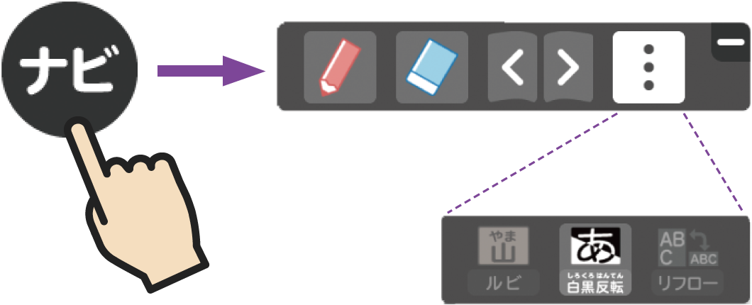 紙媒体の教科書のみを使用して学習することが困難な生徒のための学習支援機能を搭載しています。