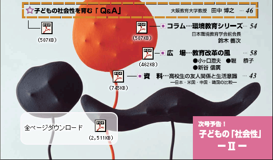 子どもの社会性[PDFファイル:730KB] 巻頭言[PDFファイル:514KB] 対談[PDFファイル:1,024KB] 子どもの社会性を育む「Q&A」[PDFファイル:587KB] 子どもの社会性を育む「Q&A」[PDFファイル:587KB] コラム 環境教育シリーズ[PDFファイル:584KB] 広場 教育改革の風[PDFファイル:462KB] 資料 高校生の友人関係と生活意識[PDFファイル:745KB] CS研レポート Vol.58(全ページ)[PDFファイル:2,546KB]