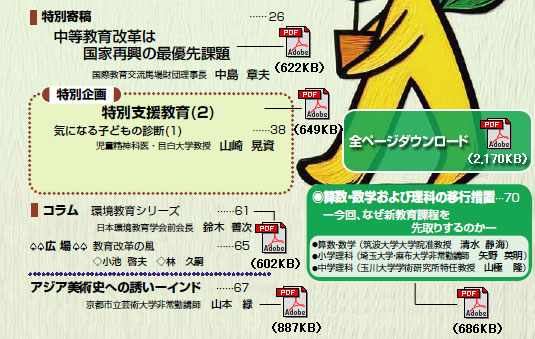 巻頭言[PDFファイル:591KB] 巻頭言[PDFファイル:591KB] 子どもを取り巻く環境[PDFファイル:885KB] 子どもを取り巻く環境[PDFファイル:885KB] 特別寄稿[PDFファイル:622KB] 特別企画 特別支援教育(2)[PDFファイル:649KB] 特別企画 特別支援教育(2)[PDFファイル:649KB] CS研レポート Vol.62(全ページ)[PDFファイル:2,170KB] コラム 環境教育シリーズ/広場 教育改革の風[PDFファイル:602KB] アジア美術史への誘い−インド[PDFファイル:887KB] アジア美術史への誘い−インド[PDFファイル:887KB] 算数・数学および理科の移行措置[PDFファイル:686KB] 算数・数学および理科の移行措置[PDFファイル:686KB]