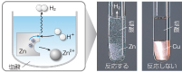 p.215_図4『金属と水の反応(濡れたろ紙上)』