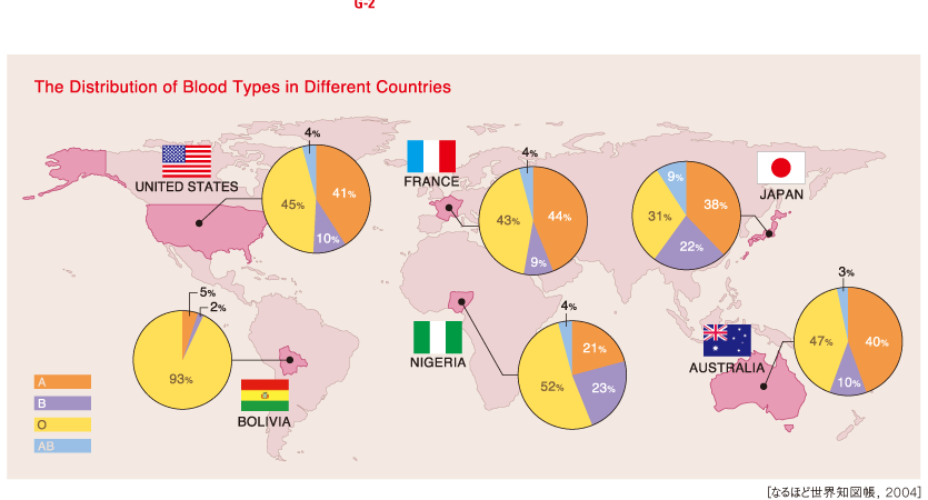 Because Japan has a more even distribution of blood types than other countries. [ Because each blood type is found in a range of 9-38% of the population. ]