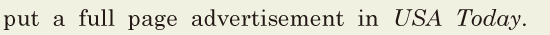 put a full page <span class='nw'>advertisement</span> / in <i>USA</i>  <i>Today</i>. //