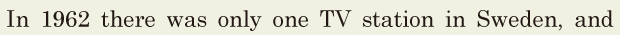 In 1962 / there was only one TV station in <span class='nw'>Sweden</span>, / and