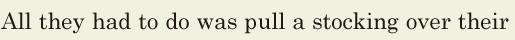 All they had to do / was pull a <span class='nw'>stocking</span> over their
