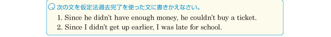 | 2. | If I had gotten up earlier, I wouldn’t have been late for school. |
