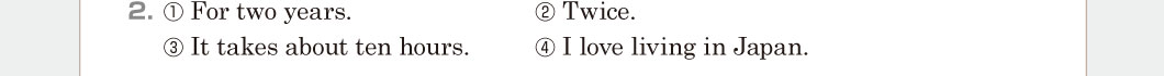 | 2. | Your Japanese is good. How long have you been in Japan? |