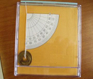 分度器を厚紙に張り,5円玉に糸をつけて固定し,MOケースに貼り付けると出来上がりである。のぞき穴のストローを取り付けるのがポイントである。 『ストローが配られた時は何が始まるのかと思っていました。説明を聞いているうちに全貌が分かったけど,本当にそんなんで角度が測れるのと疑問でいっぱいでした。けれど黒板の上の時計との角度が測れてビックリしました。自分で作る授業は面白いです。』生徒の感想である。