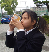 『今日の授業は,影を使って物の高さを調べる実習をしました。正直はじめは「そんなことができるわけないやんか」と思っていたけど,実際に測れて,校舎の本当の高さとの誤差も10cmというのにも驚きました。今まで数学で外に行って実験したことなどなかったので良かったかなと思います。しかし弱点の,太陽が雲に隠れてしまって調べれなくなって,待つのがちょっと面倒くさかったです。またやりたいです。』