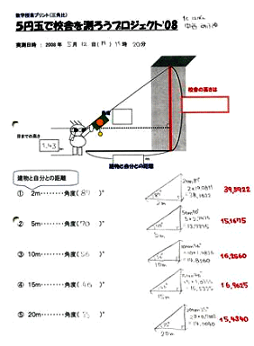 その後タンジェントを使い,木の高さやビルの高さを求める演習をこなしていく。