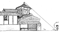 | 野良時計は安芸のシンボル的な建物です。野良時計がなぜ安芸のシンボルになったのか?そこには時計好きな一人の若者の汗と涙の物語がありました。野良時計は今から110年余り昔の明治20年ごろ,この土地の地主だった畠中源馬氏によって作られました。時計に魅せられた源馬氏は,西欧から時計を取り寄せ独学で研究し,そして分銅も歯車もすべて手作りで野良時計を完成させた。この頃時計などなかったので,野良仕事をしていた人達に時間を知らせていました。これが野良時計の所以です。 この野良時計からの問題です。 野良時計から3m離れた地点に観光客のちっちゃいおばちゃんが立っています。おばちゃんの身長は132cmです。おばちゃんの足元から野良時計のてっぺんまでの角度は64°でした。さて,野良時計の高さは何mでしょうか? |