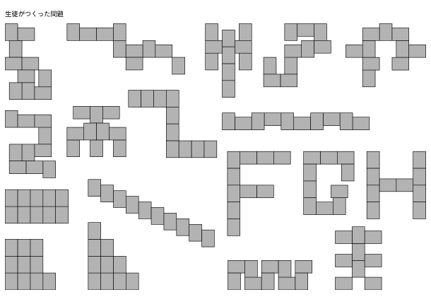 | S5 | 自分で問題をつくったりすることはあまりやらないので,楽しかった。自分でつくっていて,訳がわからなくなったりもしたけれど,自分なりによくできたと思います。 |