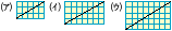 右のような方眼(ア),(イ),(ウ)に対角線を1本引いてみる。このとき,通過する方眼の眼の数はどうなるだろうか。 |