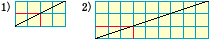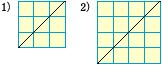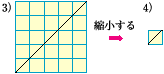 格子点を通るときが1),2)で,格子点を通らないときが3)であることがわかった。 |