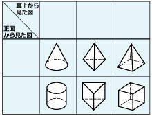 4.おわりに ハングルの表の作成,3方向の投影図から空間図形を求める,など,多くの生徒が興味をもって取り組むことができた。数学的な発展性としては,点字を2進法につなげたり,座標やベクトルへの発展も考えられたが,今回は,「数学的な見方や考え方」の範囲で留めた。実施学年は3年生であったが,1年生でも十分可能な授業である。授業での生徒の学習状況や提出レポートは,評価におおいに役立てることができた。 最後に,生徒の感想を紹介して,授業の評価の一部に替えることにする。