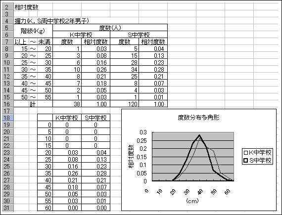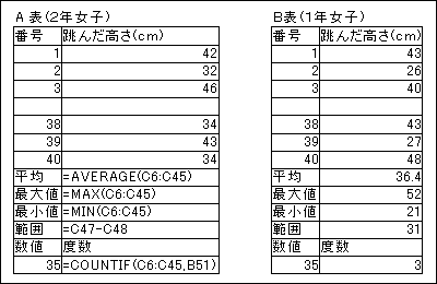 コンピュータ(表計算ソフトを使用)で,度数分布表,平均,相関図等で資料を処理する能力を高め,情報を発信することができるようにする。 |