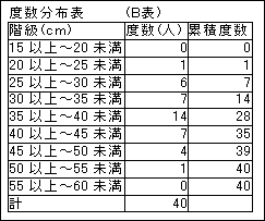 | 階級,度数,累積度数,度数分布表,ヒストグラム,度数分布多角形,相対度数,階級値,範囲,相関図,相関関係が強い,相関関係がない,相関表 |