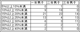 全体的に15%〜20%に集中している傾向があることがわかります。さらに3年生になると,分布がだんだん