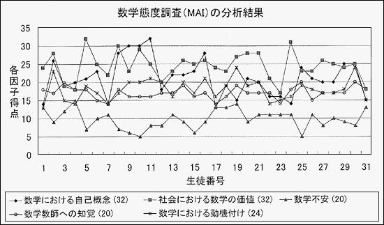この生徒は,休みがちで怠惰な傾向があり,勉強よりも違う方向に興味のある生徒である。数学に対する興味が低く,数学不安は高い。来たときの授業態度は,真面目である。プリント等はやろうとする気持ちがあるのでその面を大切にしたい。