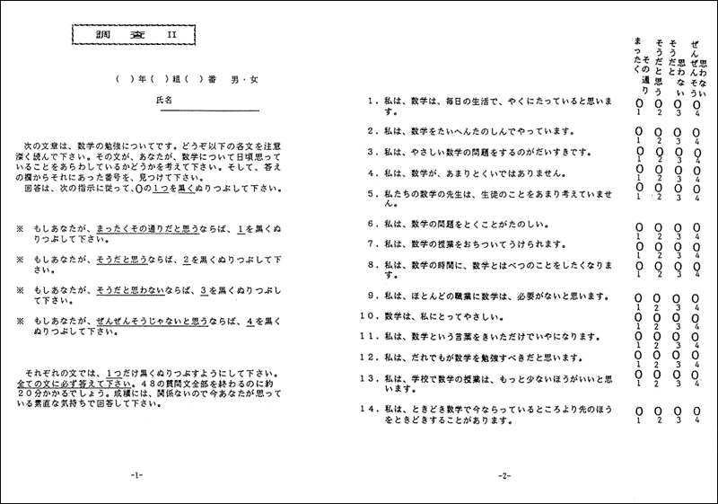 | 2 | 私は,数学を大変楽しんでやっています。 |
