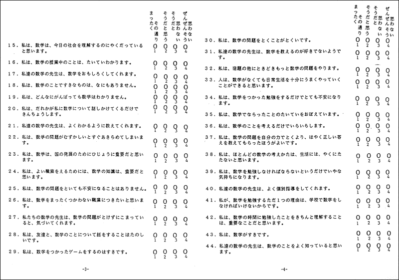 | 23 | 私は,数学は,国の発展のために非常に役立っていると思います。 |