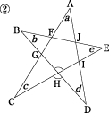 | ・ | 各自で星形五角形の内角が180°になることをいろいろな方法で求めてみましょう。 |