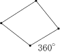 上下の2つのクサビ形を考え,その性質を使って四角形に集め,その四角形の内角の和になるから360° |