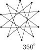 | 頂点の数を3点,4点,・・・と順に増やしながら,とばす点の数も0点,1点,・・・と増やして,星形多角形を作り,内角の和を求めましょう。 |