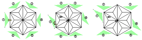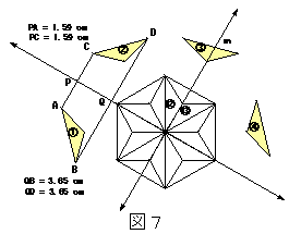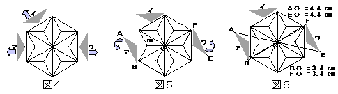 右の図は,作図した麻の葉模様の一つです。 を用いてどのようにして作図したのでしょうか。 |