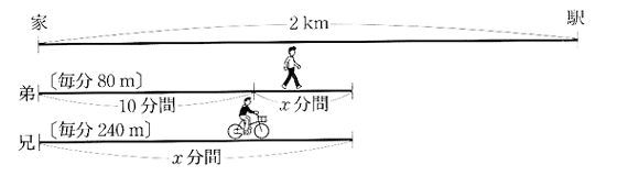 この問題は,以前の教科書(平成12年度用「新訂数学1年」〈啓林館〉)に載っていた例題とその後の関連した問題を合わせたものである。教科書では参考にする図が下図のような表し方になっているので,時間と距離の関係がとらえにくいと思われる。そこで,ダイヤグラムで表すことで,時間と距離の関係を視覚的にも整理してとらえさせたい。また,これらの活動を通してダイヤグラムの書き方や利用のしかたを深めさせたい。 ![]() 【第2時】 ●ダイヤグラムから様々なことを導き出す。