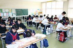 教師2人で生徒の活動に素早く対応し,さらに数学的な考え方が発展するようアドバイスをする。 |